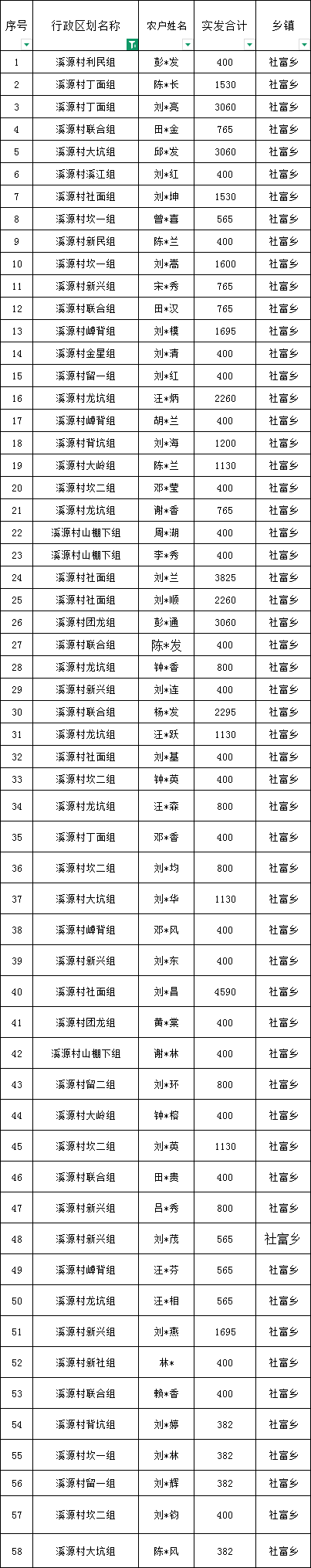社富鄉溪源村預報2026年1月份農村低保匯總名單