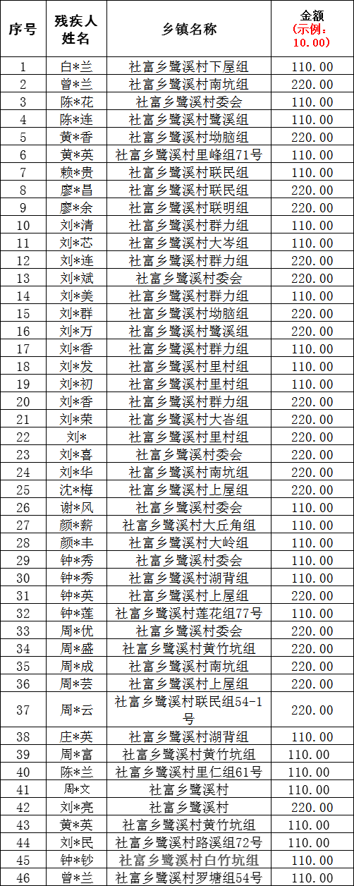 鷺溪村2025年12月殘疾人“兩項”申請發放總表