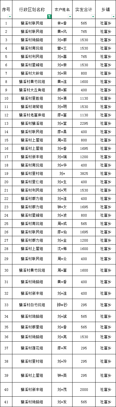 社富鄉鷺溪村預報2026年1月份農村低保匯總名單