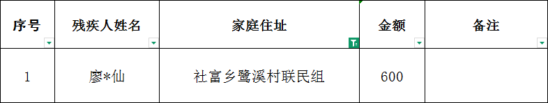 社富鄉(xiāng)鷺溪村2026年2月建檔立卡貧困重度失能殘疾人居家照護(hù)對(duì)象撥款名單