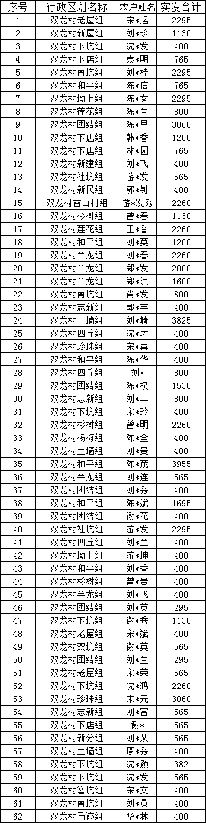 【社會救助】雙龍村2025年12月份農村低保名單公示
