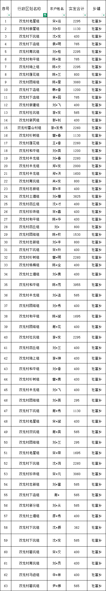 社富鄉(xiāng)雙龍村預報2026年2月份農村低保匯總名單