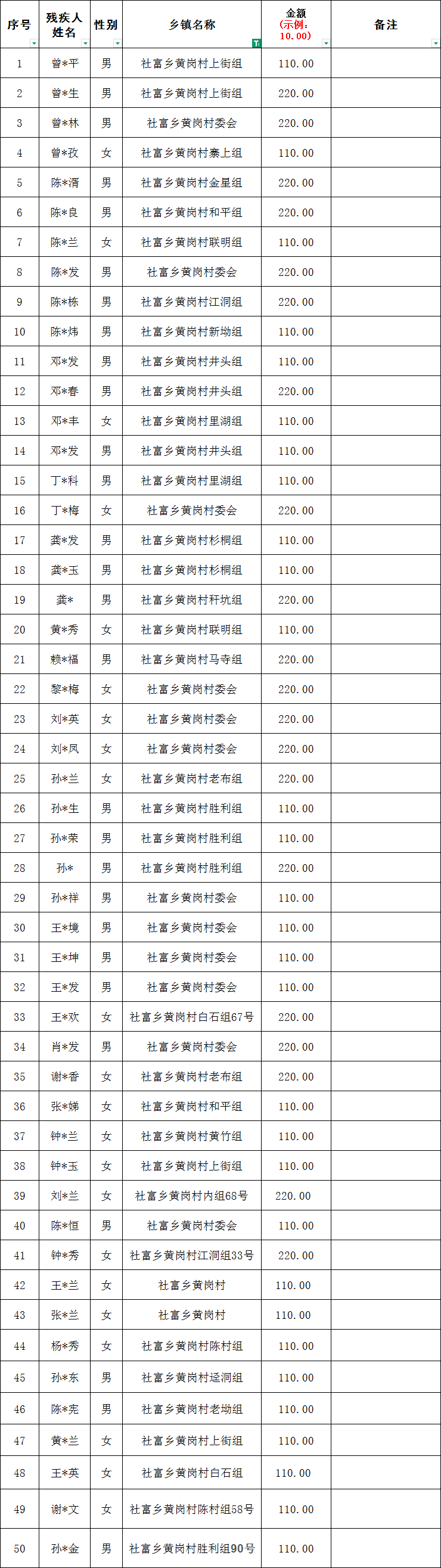 社富鄉(xiāng)黃崗村2026年1月殘疾人“兩項”申請發(fā)放總表