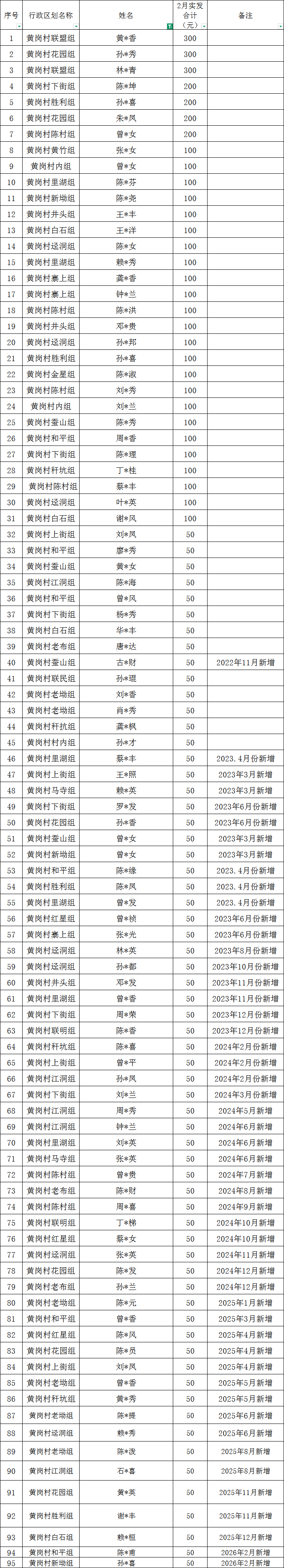 社富鄉黃崗村2026年2月高齡老人長壽名單