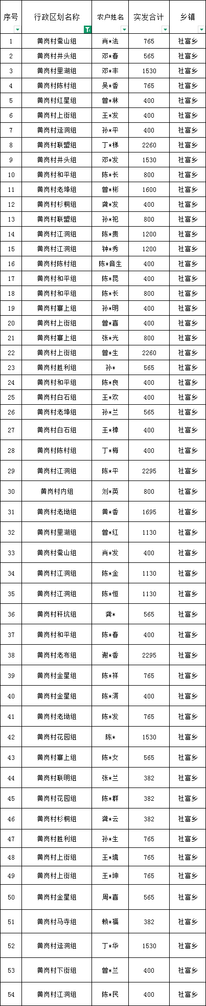 社富鄉黃崗村預報2026年2月份農村低保匯總名單