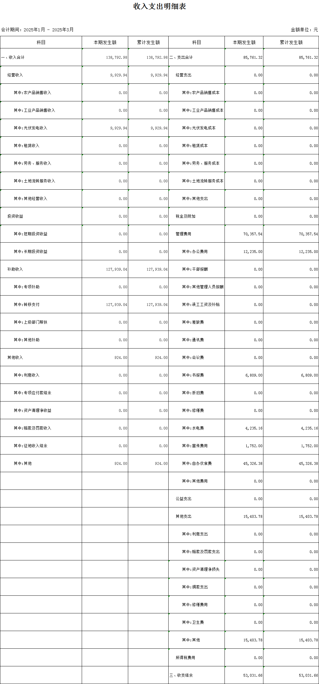 黃崗村2025年第一季度村級收入支出明細(xì)表