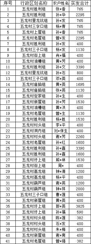 【社會救助】五龍村2025年12月份農村低保名單公示