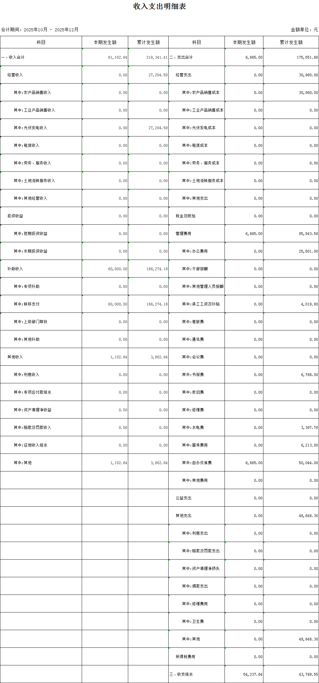 (五龍村)2025年第四季度村級(jí)收入支出明細(xì)表