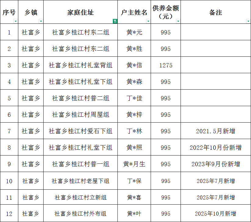 社富鄉桂江村2026年1月特困確認樣表