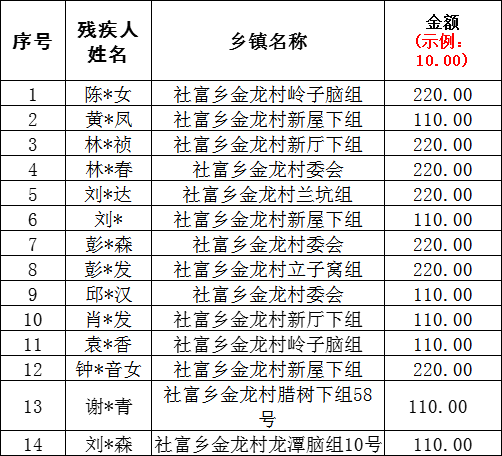 金龍村2025年12月殘疾人“兩項”申請發放總表