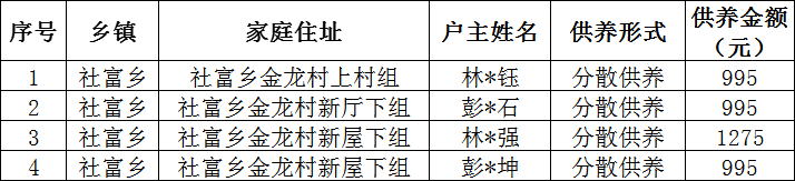 【社會救助】金龍村2025年12月特困確認樣表公示