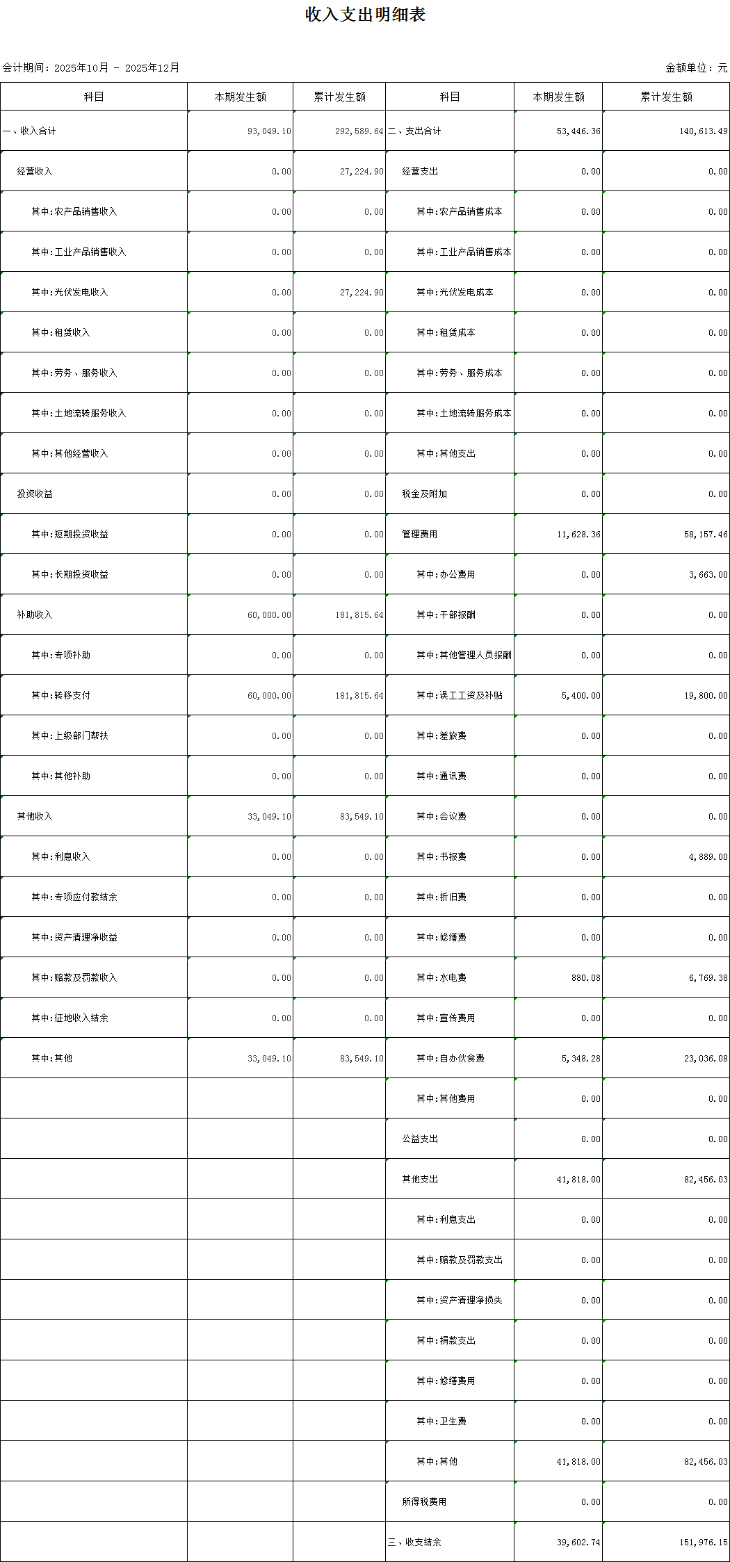 (金龍村)2025年第四季度村級(jí)收入支出明細(xì)表