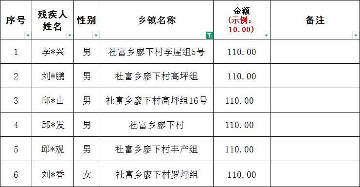 社富鄉廖下村2026年2月份殘疾人兩項補貼撥款名單
