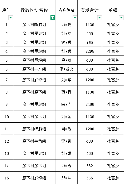 社富鄉(xiāng)廖下村預(yù)報(bào)2026年2月份農(nóng)村低保匯總名單