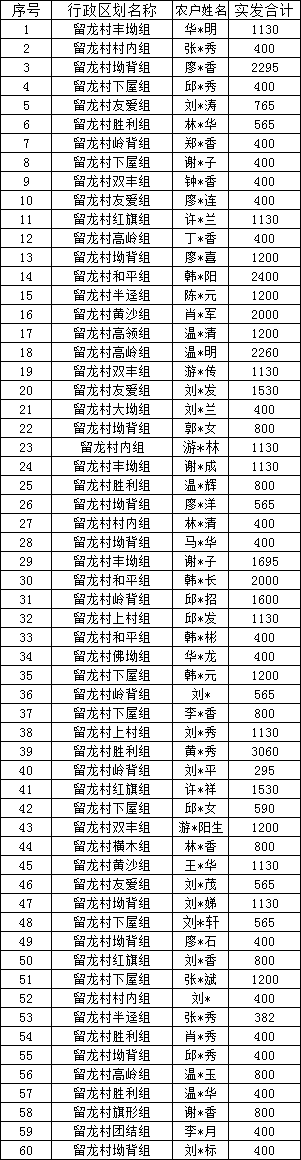 【社會救助】留龍村2025年12月份農(nóng)村低保名單公示
