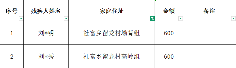 社富鄉留龍村2026年1月建檔立卡貧困重度失能殘疾人居家照護對象撥款名單