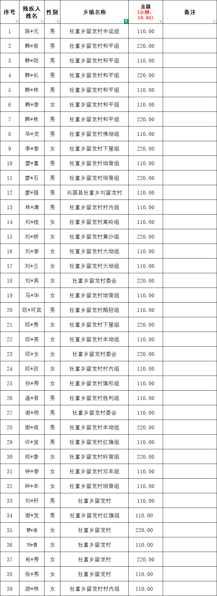 社富鄉(xiāng)留龍村2026年2月份殘疾人兩項(xiàng)補(bǔ)貼撥款名單