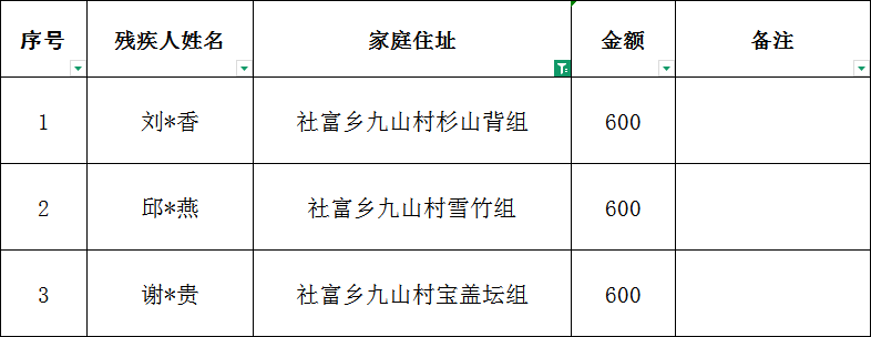 社富鄉九山村2025年12月建檔立卡貧困重度失能殘疾人居家照護對象撥款名單