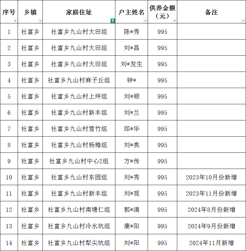 社富鄉(xiāng)九山村2026年1月農(nóng)村特困分散供養(yǎng)金撥款名單