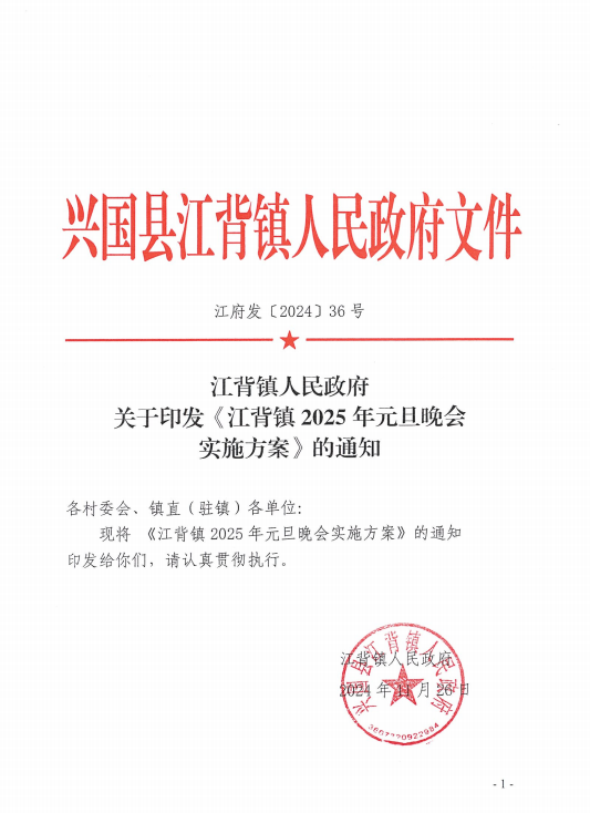 興國縣江背鎮人民政府關于印發《江背鎮2025年元旦晚會實施方案》的通知