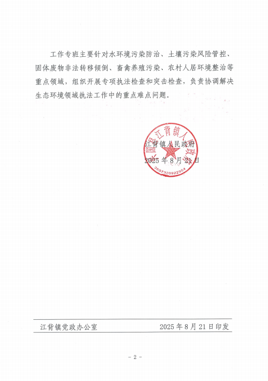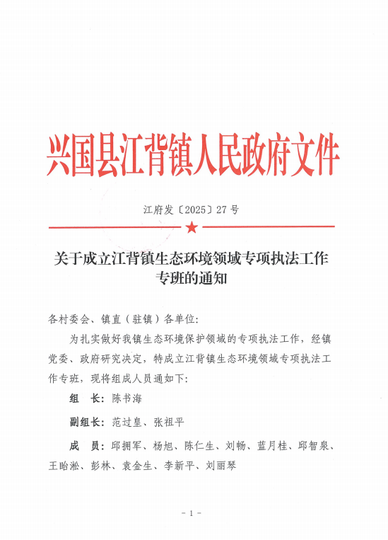 關于成立江背鎮生態環境領域專項執法工作專班的通知