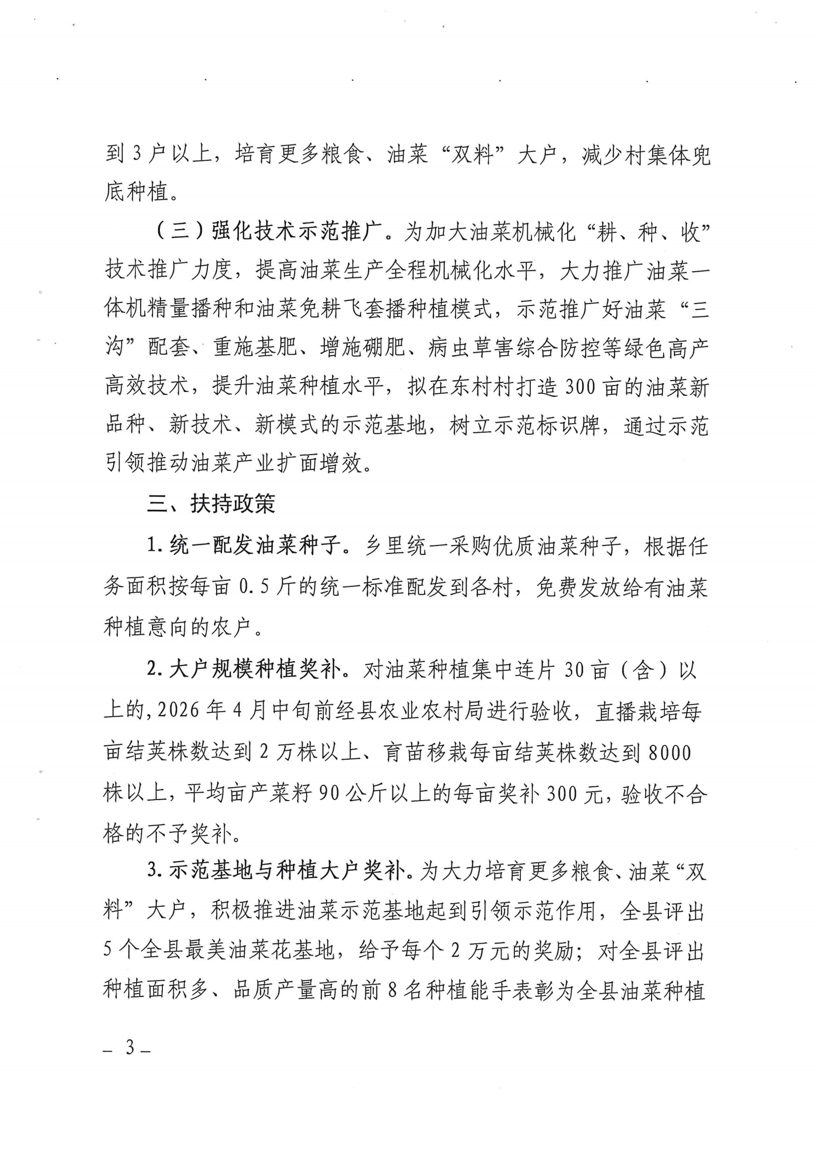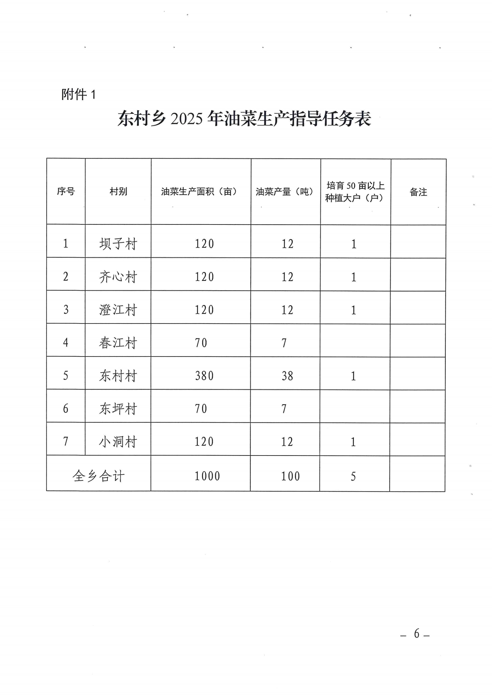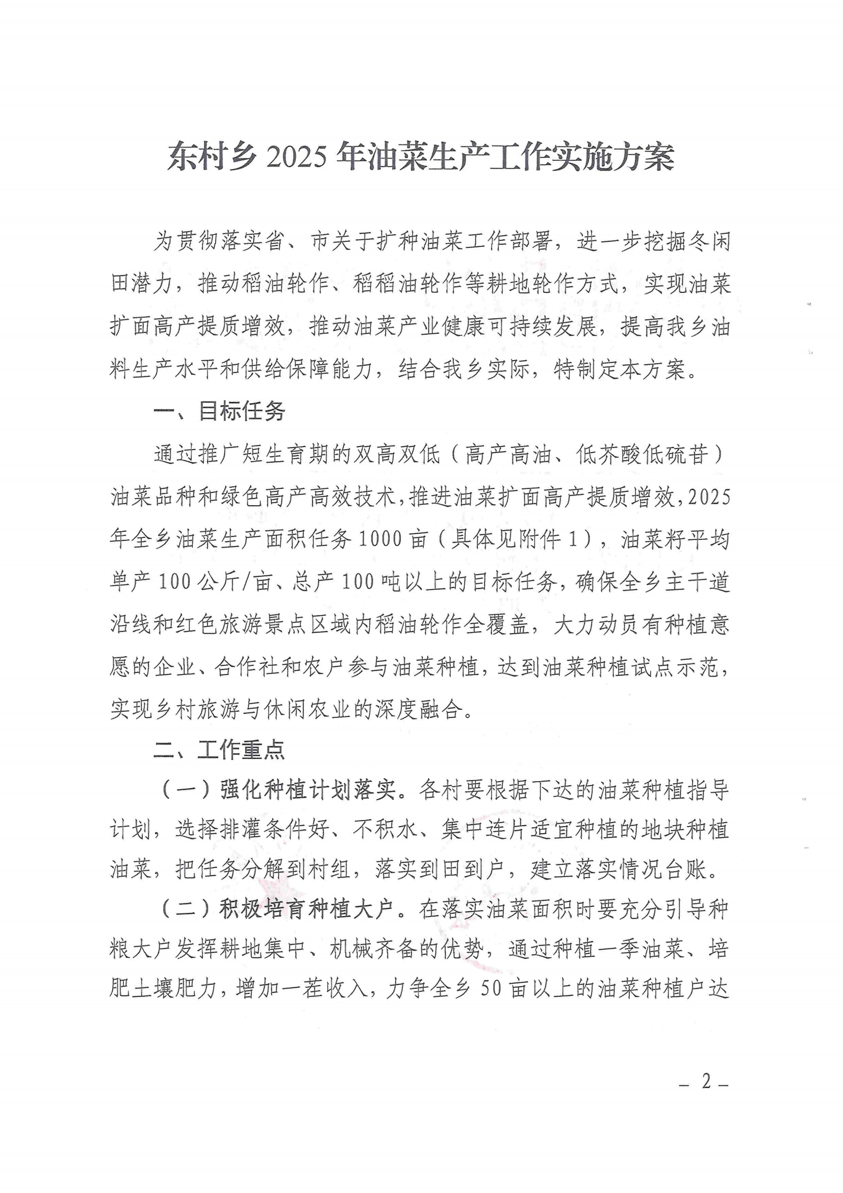 關(guān)于印發(fā)《東村鄉(xiāng)2025年油菜生產(chǎn)工作實施方案》的通知
