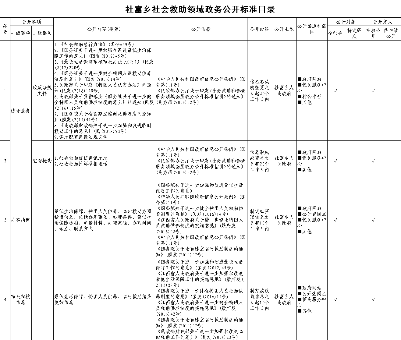 社富鄉(xiāng)社會(huì)救助領(lǐng)域政務(wù)公開標(biāo)準(zhǔn)目錄