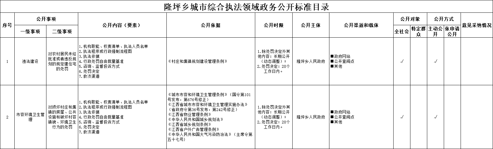 隆坪鄉城市綜合執法領域政務公開標準目錄