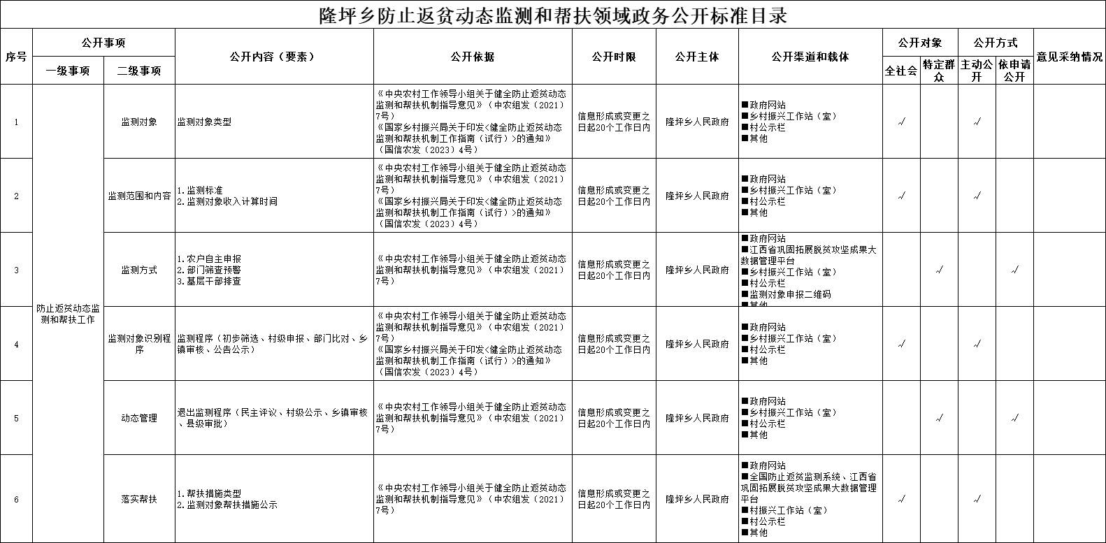 隆坪鄉防止返貧動態監測和幫扶領域政務公開標準目錄