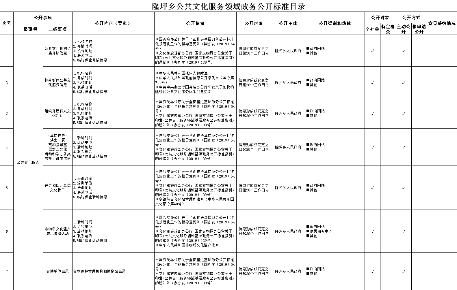 隆坪鄉(xiāng)公共文化服務(wù)領(lǐng)域政務(wù)公開(kāi)標(biāo)準(zhǔn)目錄