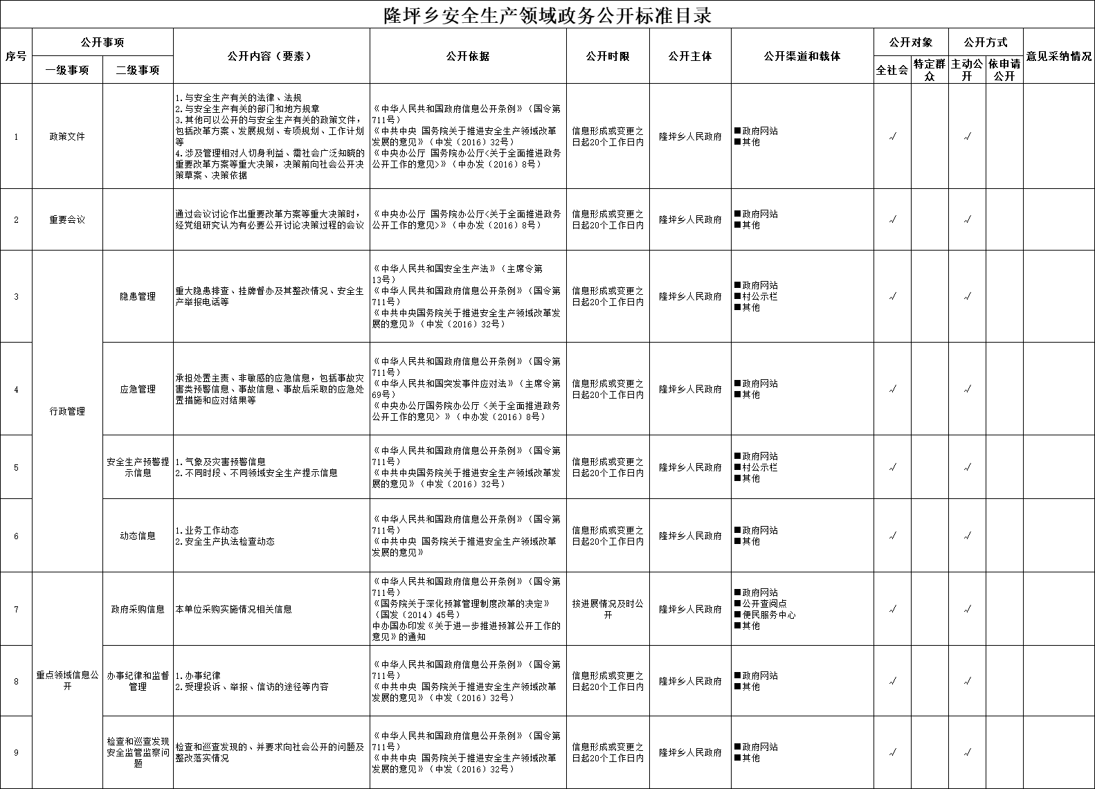 隆坪鄉(xiāng)安全生產(chǎn)領(lǐng)域政務公開標準目錄