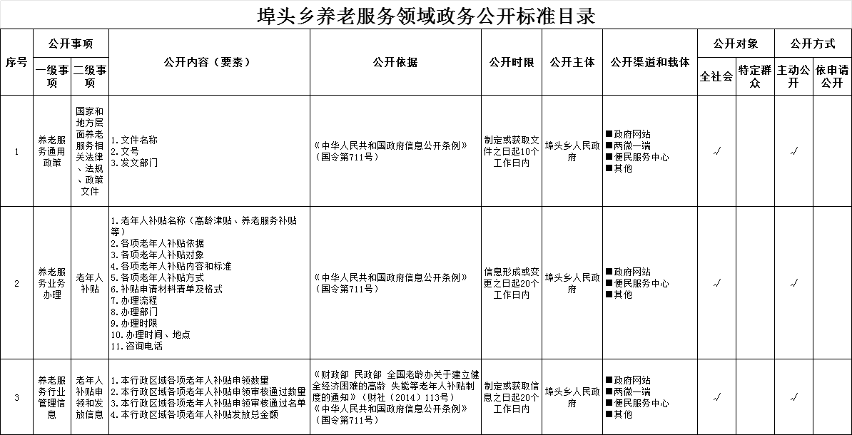 埠頭鄉養老服務領域政務公開標準目錄