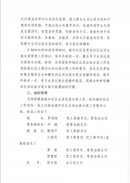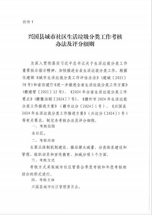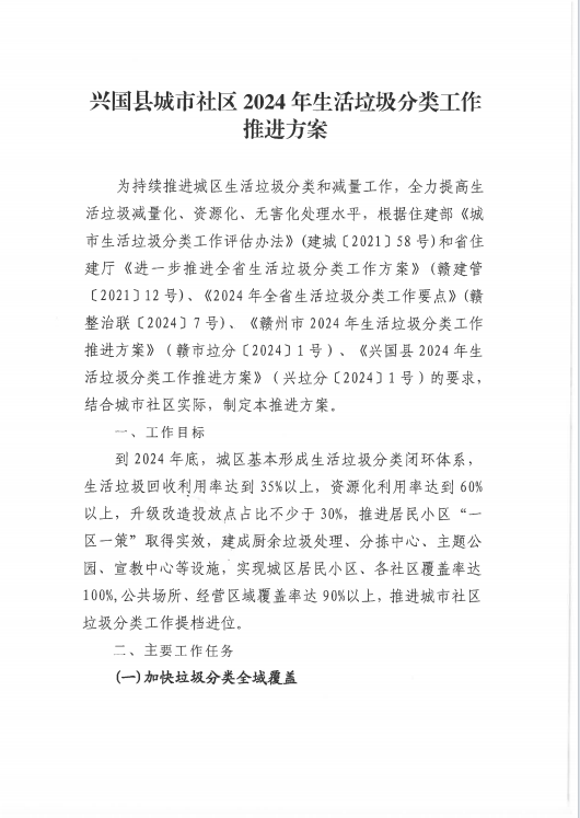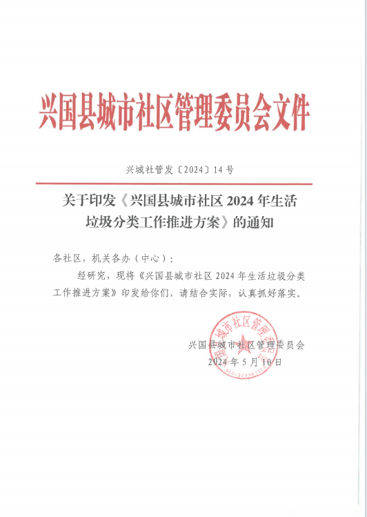 關于印發《興國縣城市社區2024年生活垃圾分類工作推進方案》的通知