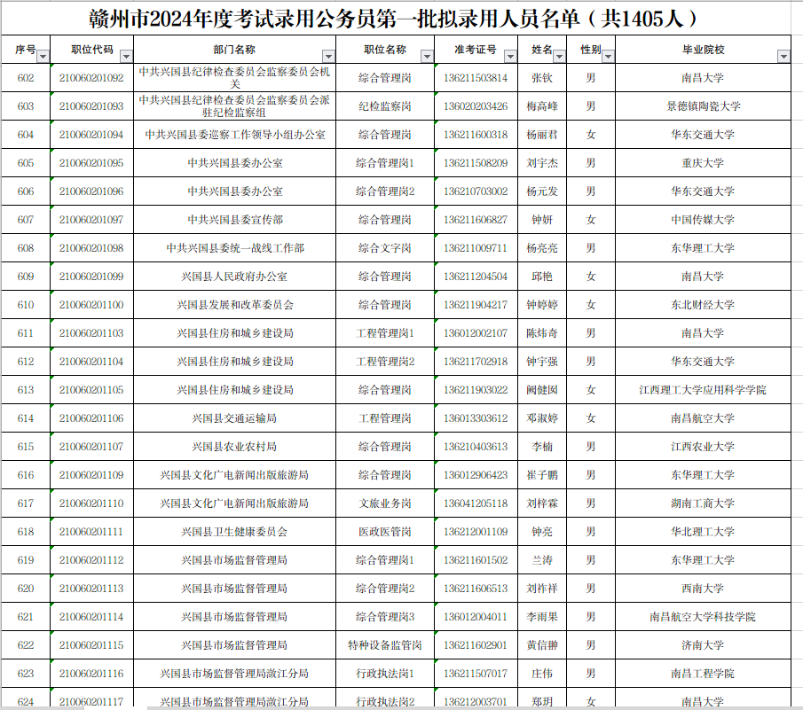 附件:贛州市2024年度考試錄用公務員第一批擬錄用人員名單(共1405人)