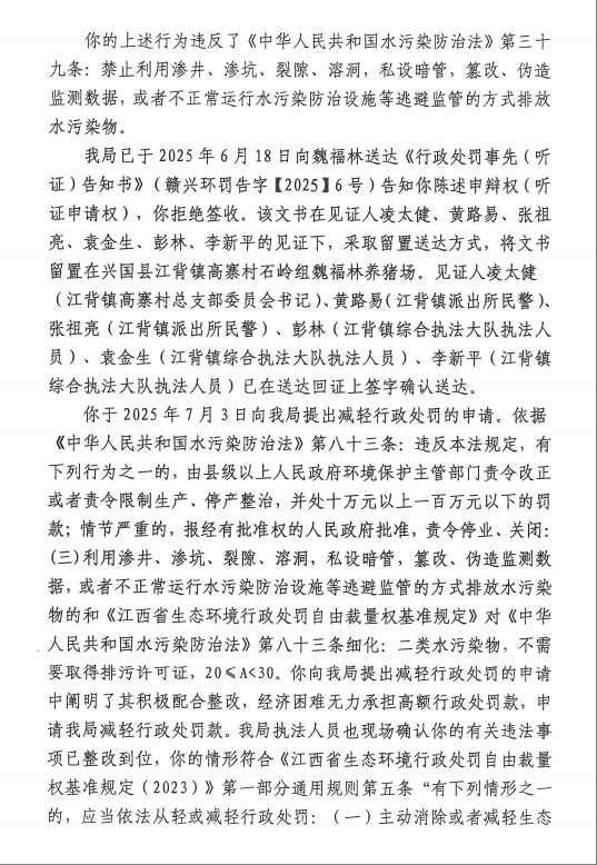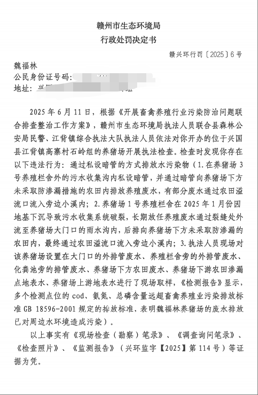 魏福林行政處罰決定書公示(贛興環(huán)行罰〔2025〕6號(hào))