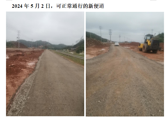 自2022年產業園擴園以來,因服裝產業園路網建設和土地平整工程造成進鄭塘村道路損毀和排水不暢,給群眾出行帶來困難,鄭塘村第一時間向上級匯報,申請及時解決出行道路問題,并且,為了緩解道路排水問題,鄭塘村于2024年3月30日,組織機械對道路兩側開溝排水,但自進入4月份以來,雨水集中且持續下雨,導致路面無法及時排水。2024年4月9日,我鎮領導聯合縣級領導到實地踏看,就此問題進行商議解決方案,縣級相關部門與城投協商在鄭塘村在建的便民服務中心門口另辟一條便道,連接瑞興于快速通道,2024年4月30日,這條便道已實施,并在2024年5月2日可正常通行。