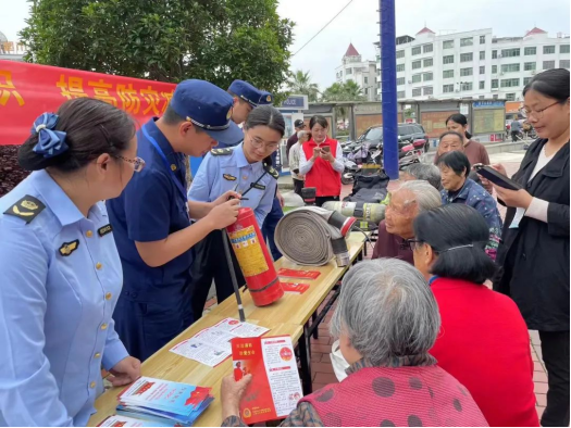 活動現場,興國縣應急管理局工作人員為居民講授日常生活中用火、用水、用電安全以及防災減災和各類場景逃生技能等應急安全知識。同時,通過現場示范、邀請居民親身體驗的方式,指導大家如何快速正確使用滅火器,幫助居民掌握消防應急處置的基本技能,并提醒大家在生活中注意排查消防安全隱患,養成安全用火用電的好習慣。