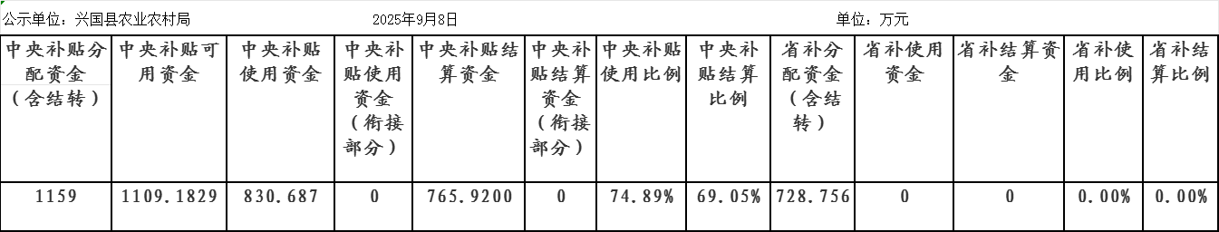 2025年興國縣農機購置補貼實施進度(截至2025年9月8日)