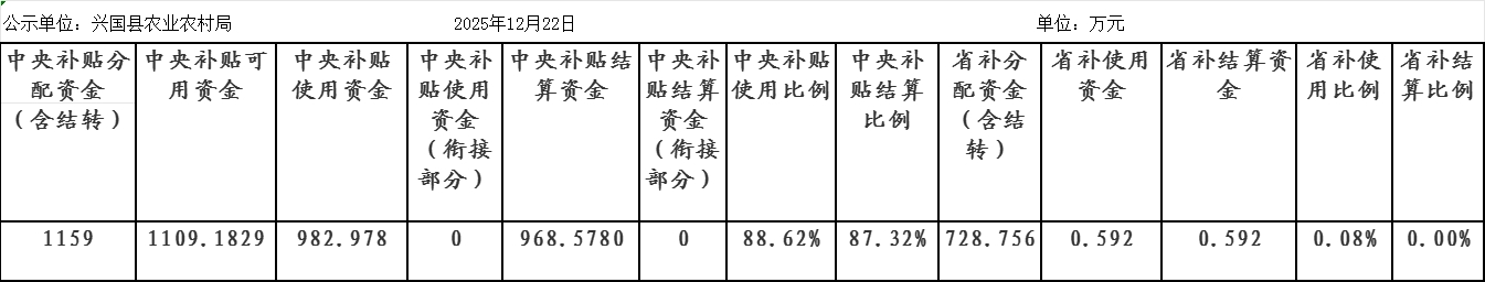 2025年興國縣農機購置補貼實施進度(截至2025年12月22日)