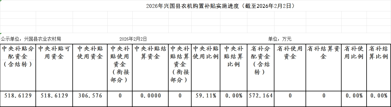 2026年興國縣農(nóng)機(jī)購置補(bǔ)貼實(shí)施進(jìn)度(截至2026年2月2日)