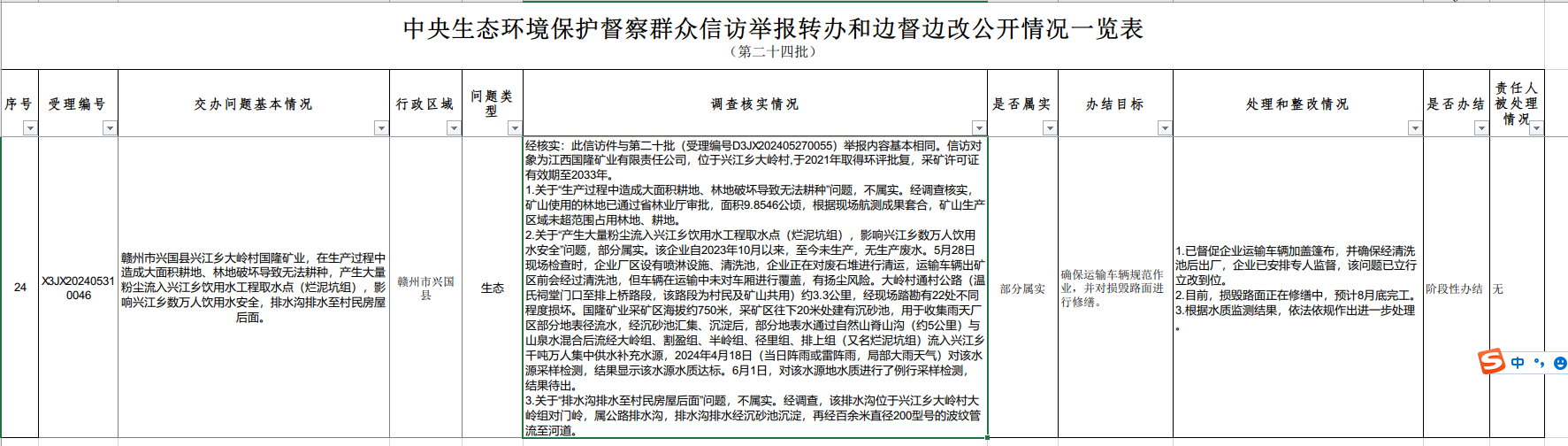 (贛州第二十四批)附件3中央生態(tài)環(huán)境保護(hù)督察群眾信訪舉報(bào)轉(zhuǎn)辦和邊督邊改公開情況一覽表