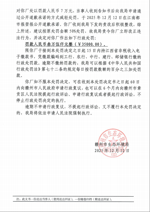 興國縣億萬新型建材廠行政處罰決定書公示(贛興環行罰〔2025〕16號)