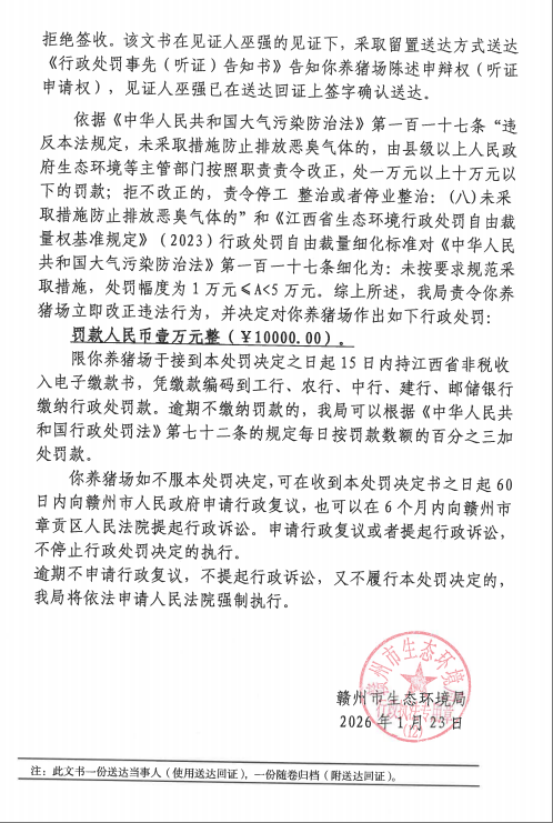 興國縣珠朱生豬養殖場行政處罰決定書公示(贛興環罰【2026】2號)
