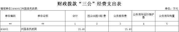 2023年興國縣民政局單位“三公”經費一般公共預算安排15.4萬元。其中: