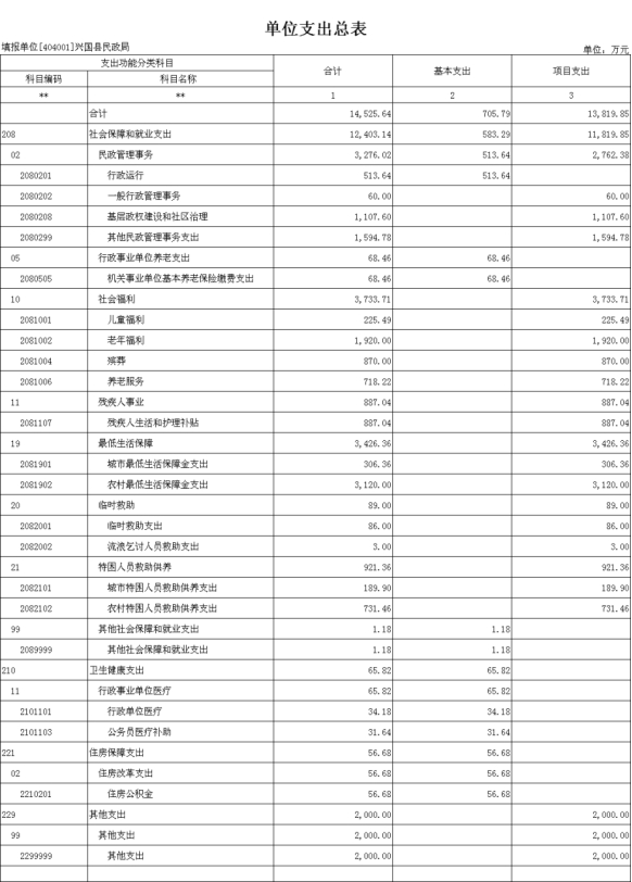 按支出功能分類科目劃分:社會保障和就業支出12403.14萬元,較上年預算安排減少7897.9萬元,占總支出的85%;衛生健康支出65.82萬元,占總支出的1%,較上年預算安排增加9.52萬元;住房保障支出56.68萬元,占總支出的1%,較上年預算安排增加8.38萬元;其他支出2000萬元,占總支出的13%,較上年預算安排增加744.56萬元。