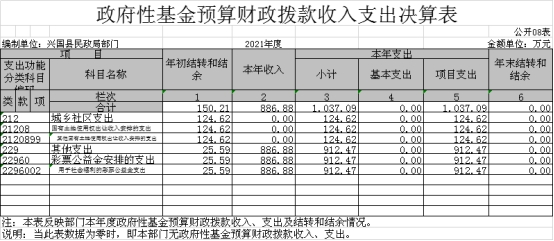 納入本套部門決算匯編范圍的單位共?2個,包括:興國縣民政局機關、興國縣隆坪精神病人福利院。