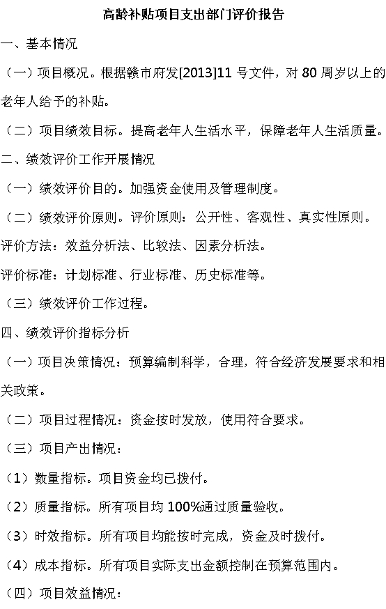 組織對“農村低?!?、“高齡補貼”、“殘疾人兩項補貼”等3個項目開展了部門評價,涉及一般公共預算支出???5568萬元,政府性基金預算支出0萬元,國有資本預算支出 0 ?萬元。從評價情況來看,項目取得了良好的社會效益。提升了民政公共服務建設水平和服務水平,但農村低保配套資金執行率偏低,原因是上級有資金下撥。