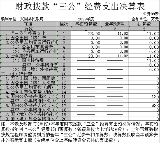 “三公”經(jīng)費支出:指用財政撥款安排的因公出國(境)費、公務(wù)用車購置及運行維護(hù)費和公務(wù)接待費。其中,因公出國(境)費反映單位公務(wù)出國(境)的國際旅費、國外城市間交通費、住宿費、伙食費、培訓(xùn)費、公雜費等支出;公務(wù)用車購置及運行維護(hù)費反映單位公務(wù)用車車輛購置支出(含車輛購置稅、牌照費),按規(guī)定保留的公務(wù)用車燃料費、維修費、過橋過路費、保險費、安全獎勵費用等支出;公務(wù)接待費反映單位按規(guī)定開支的各類公務(wù)接待(含外賓接待)支出。