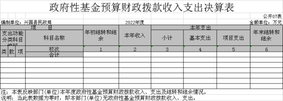 七、政府性基金預(yù)算財政撥款收入支出決算表