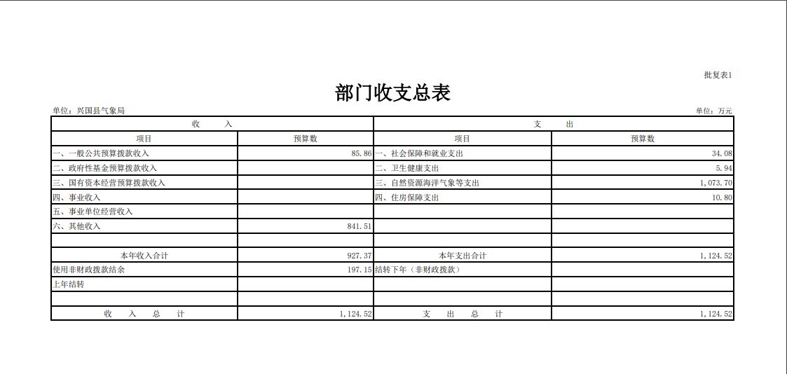 2023年興國縣氣象局部門總收入1,124.52萬元,其中:本年收入927.37萬元,上年結轉(zhuǎn)/萬元,使用非財政撥款結余197.15萬元。